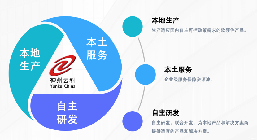 紧跟国家自主可控战略,kaiyun.com通过“本地生产、本土服务、自主研发”的战略路径,打造自主品牌、生产自主产品,为合作伙伴提供神州数码自主品牌、自主知识产权的云基础设施产品、服务及解决方案。